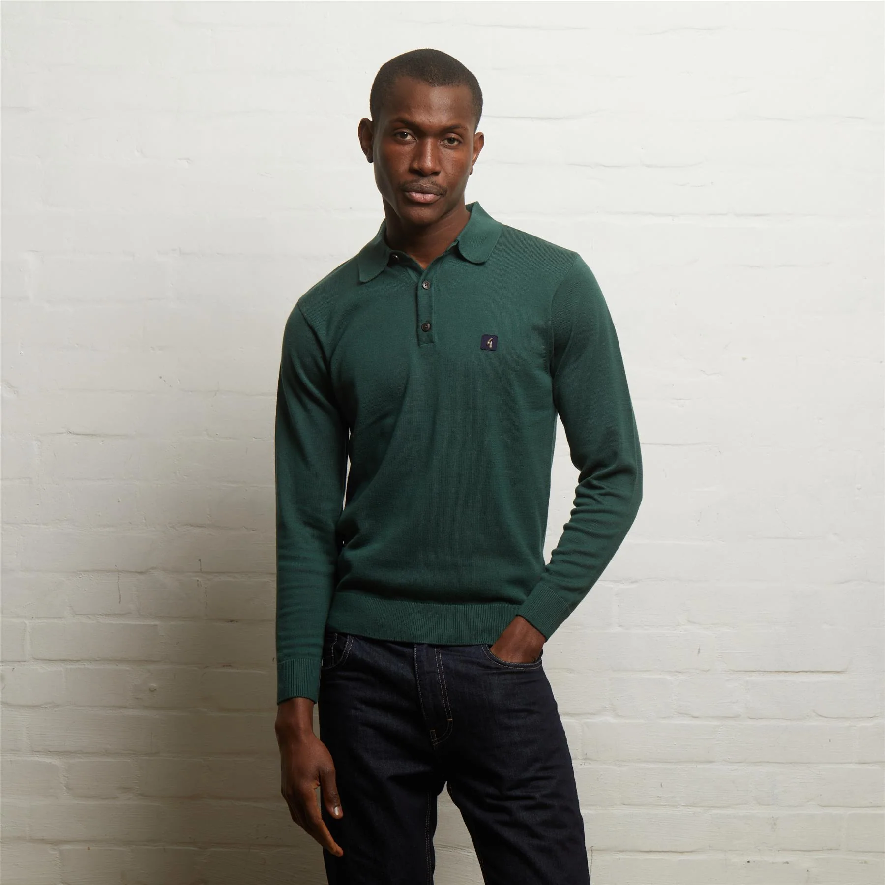 Gabicci Vintage Ivy Francesco Long Sleeve Plain Knitted Three Button Polo